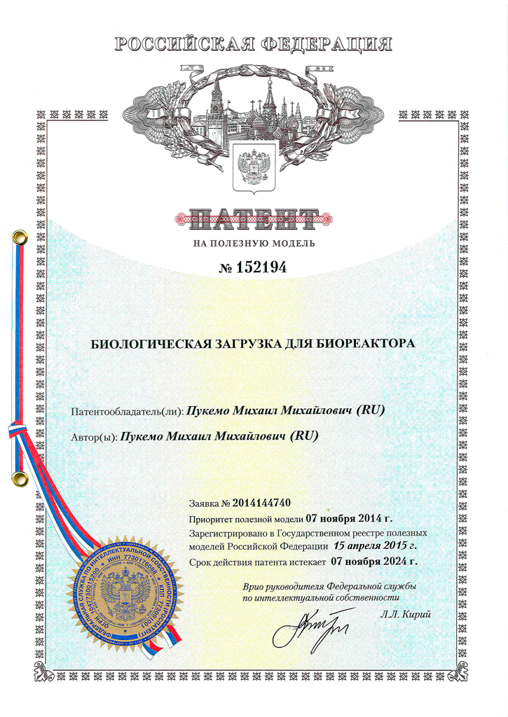 Патент на биологическую загрузку для биореактора